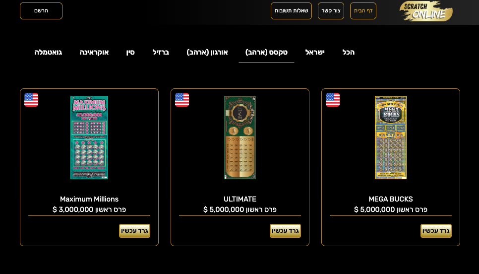 - רכישת כרטיסים מכל העולם – משתמשים יכולים לבחור כרטיסי גירוד מלוטו אמיתי במדינות שונות.